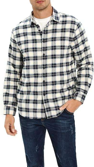 【Premium Material】: Men’s button down flannel shirt, 8oz fabric, warm and thick, comfortable for wear, classic plaid pattern